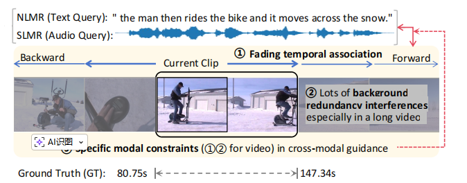 图1 视频时刻检索的关键挑战与解决方案示意图