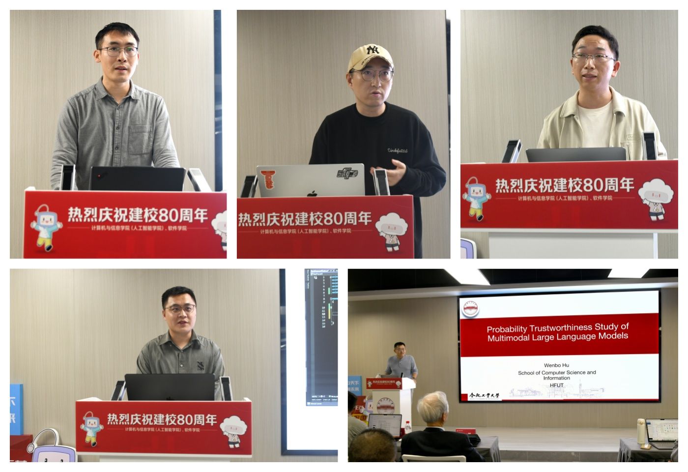 在随后进行的青年学者论坛上,五位优秀青年学者先后分享了前沿研究成果。清华大学助理教授董胤蓬首位登场,以“基于推理增强的大模型安全对齐”为题,探讨了如何从推理层面增强模型的安全反思与约束能力,为构建更可信的大模型提供了新思路;中国科学技术大学王翔特任教授系统介绍了“大模型可控安全初探”的全生命周期干预方案;科大讯飞研究院研发总监、我院2014届计算机科学与技术专业校友黄爽结合“星火大模型”落地实践,剖析了应用中的安全挑战;上海交通大学邓志杰助理教授报告了“自回归-扩散混合模型及应用”在提升生成效率方面的突破;我院胡文波副教授则聚焦“多模态大模型概率可信研究”,致力于增强AI系统的可靠性与透明度。