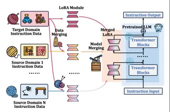 跨域序列推荐系统通过迁移多域知识来提升目标域的推荐性能,现有方法大多依赖域间重叠用户或物品进行建模,这在实际场景中很难满足。大语言模型和模型融合技术为解决这一问题提供了很好的思路:LLM具备强大的语义理解能力,能够通过文本描述理解不同域的物品,摆脱对重叠用户或物品的依赖;而模型融合可以将各域独立训练的模型参数直接合并为单一模型,无需共享原始数据即可整合多域知识。然而实验发现,简单合并数据训练或直接融合多个领域模型反而会导致性能下降。针对这一问题,本文分析发现,源域模型未接触过目标域数据,在目标域上表现较差,而融合后的模型性能会被源域模型拉低。基于这一洞察,本文提出了WeaveRec框架,通过"交织"方式将源域与目标域数据混合训练多个LoRA模块,再进行模型融合。该方法无需重叠用户/物品、支持多源域扩展、且不增加推理开销。理论分析以及在多个品类的跨域和跨平台推荐实验表明,WeaveRec均显著优于现有基线方法。