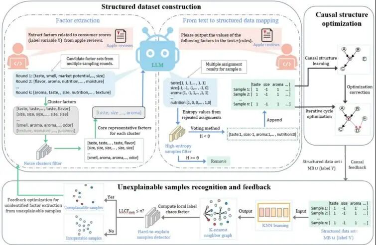 从非结构化文本中学习因果关系能显著增强决策能力与AI推理的鲁棒性。然而,现有因果发现方法主要面向结构化数值数据,难以直接用于文本;大语言模型虽具备语义理解能力,却难以从文本中挖掘多变量间复杂的因果关系。为此,本文提出一种多阶段反馈驱动的因果发现框架(CAST),其核心为自增强的因果发现流程:首先通过多轮随机采样与语义聚类提取低冗余、高共识的因果变量;接着基于学习到的变量,通过信息熵过滤机制将文本转化为高质量结构化数据;最后提出局部标签混乱因子(LLCF)概念,用于定位模型难以解释的样本,并以此驱动潜在因果变量的迭代发现与验证。该方法具备信息论基础与收敛性保证,在多个真实与合成数据集上的实验表明,CAST在因子提取准确率、结构化数据构建质量及因果图学习性能上均显著优于现有基线,尤其在资源受限场景下仍保持优异性能。本工作为从文本中端到端挖掘因果关系提供了系统方法,具有较强的实用价值与推广潜力。
