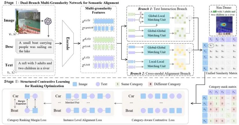 Dual-Branch Multi-Granularity Network with Structured Contrastive Ranking for Cross-Modal Retrieval